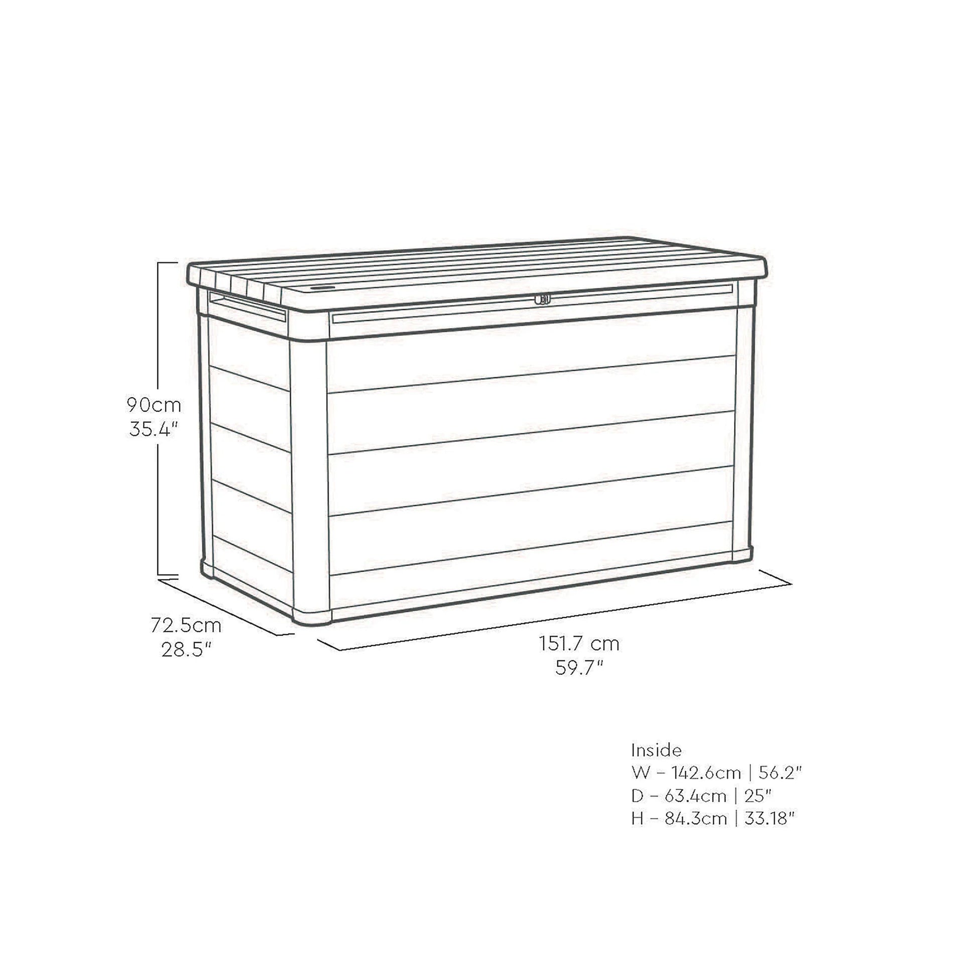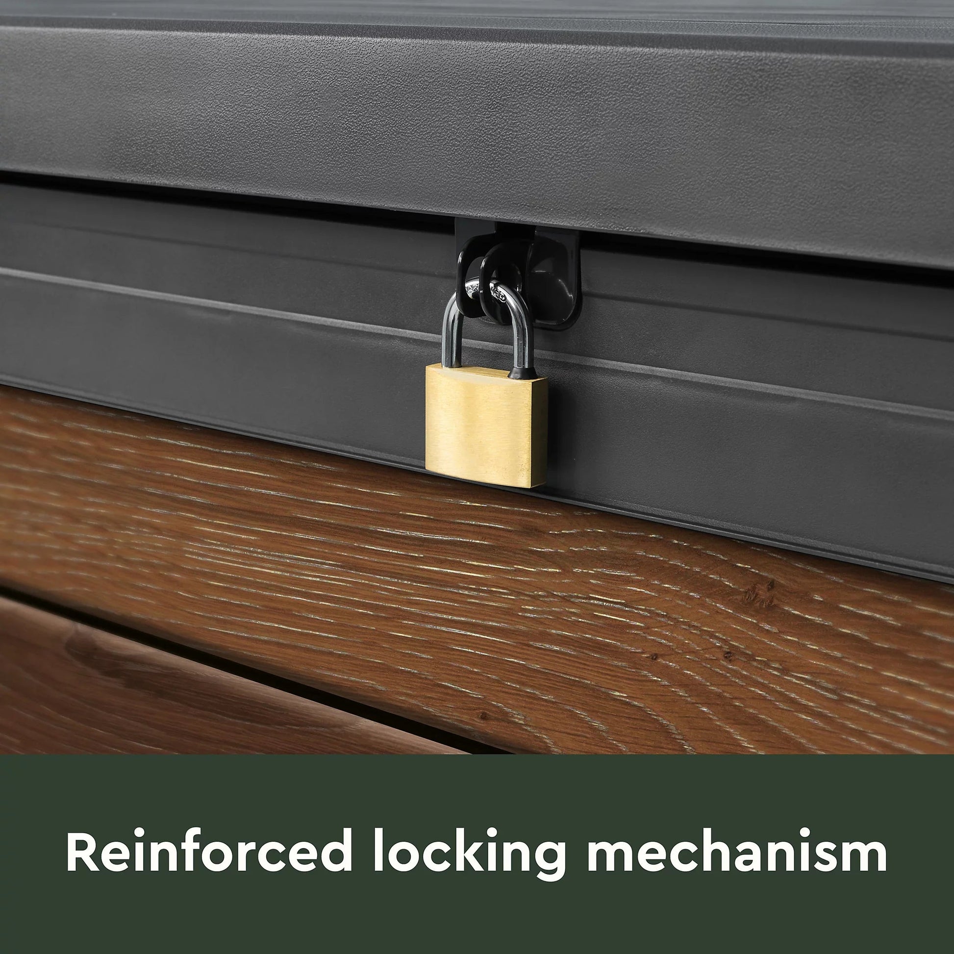 • 757L outdoor storage box with Decocoat walnut wood-effect finish